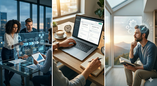 | Estrategia Digital SEO, embudos de venta y análisis de datos para negocios reales. | Prodctividad Cómo gestionar el activo más escaso de un emprendedor: “El tiempo”. | Mentalidad La psicología detrás de la toma de decisiones y el éxito a largo plazo. |